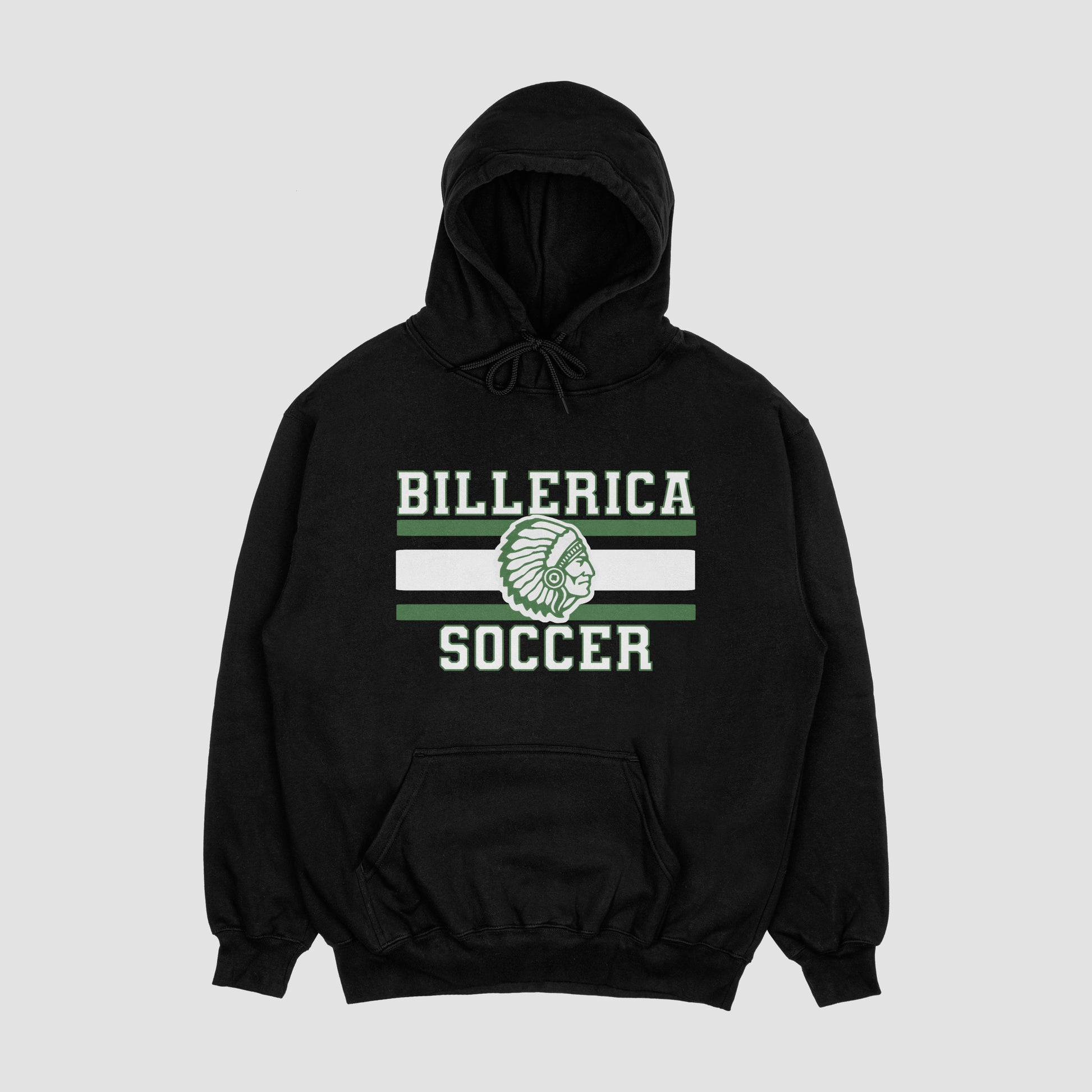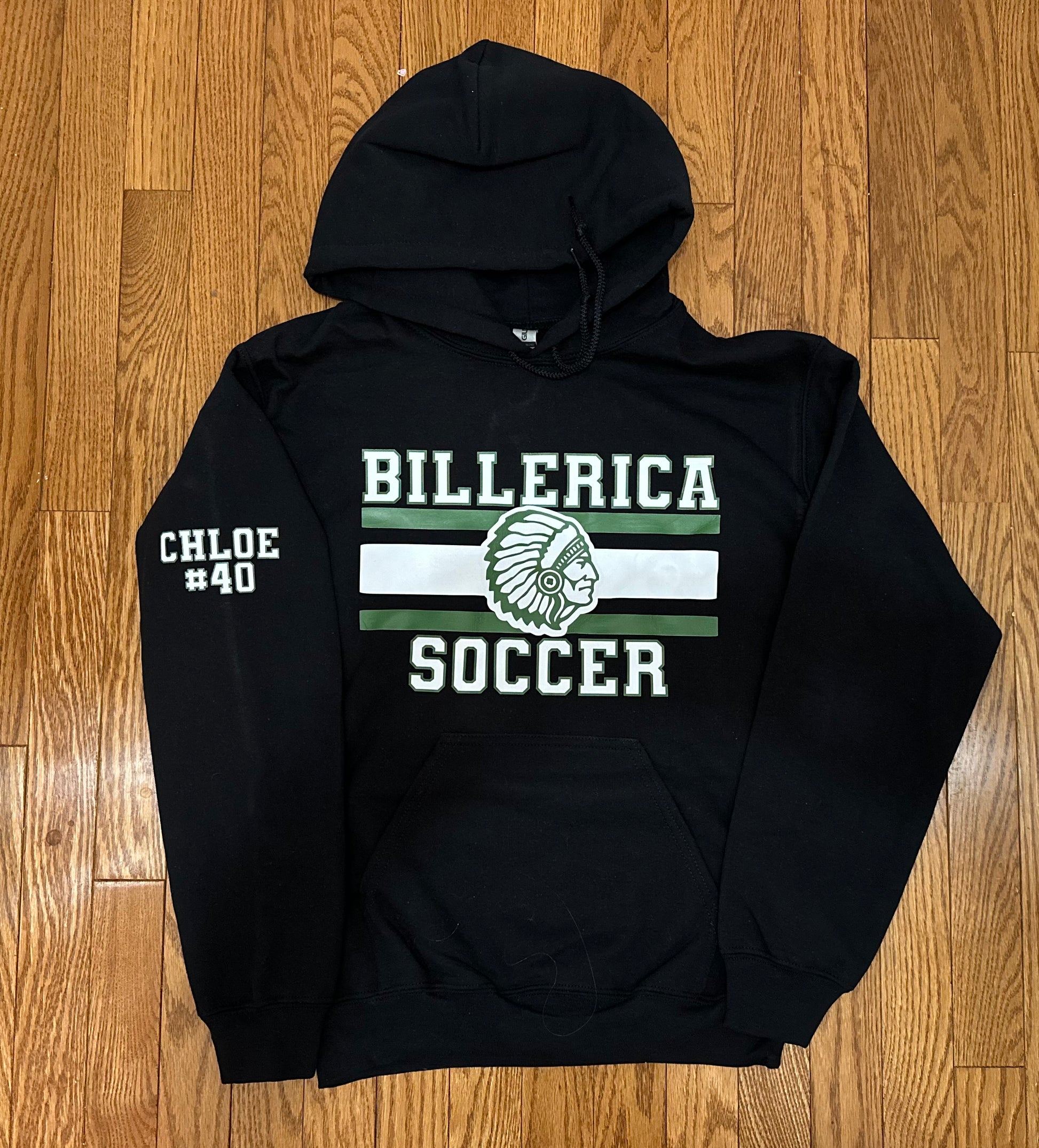 Billerica Soccer Sweatshirt. Available in sizes toddler to adults. Sleeve is customizable to add player's name or soccer number. Please add it in the personalization section.