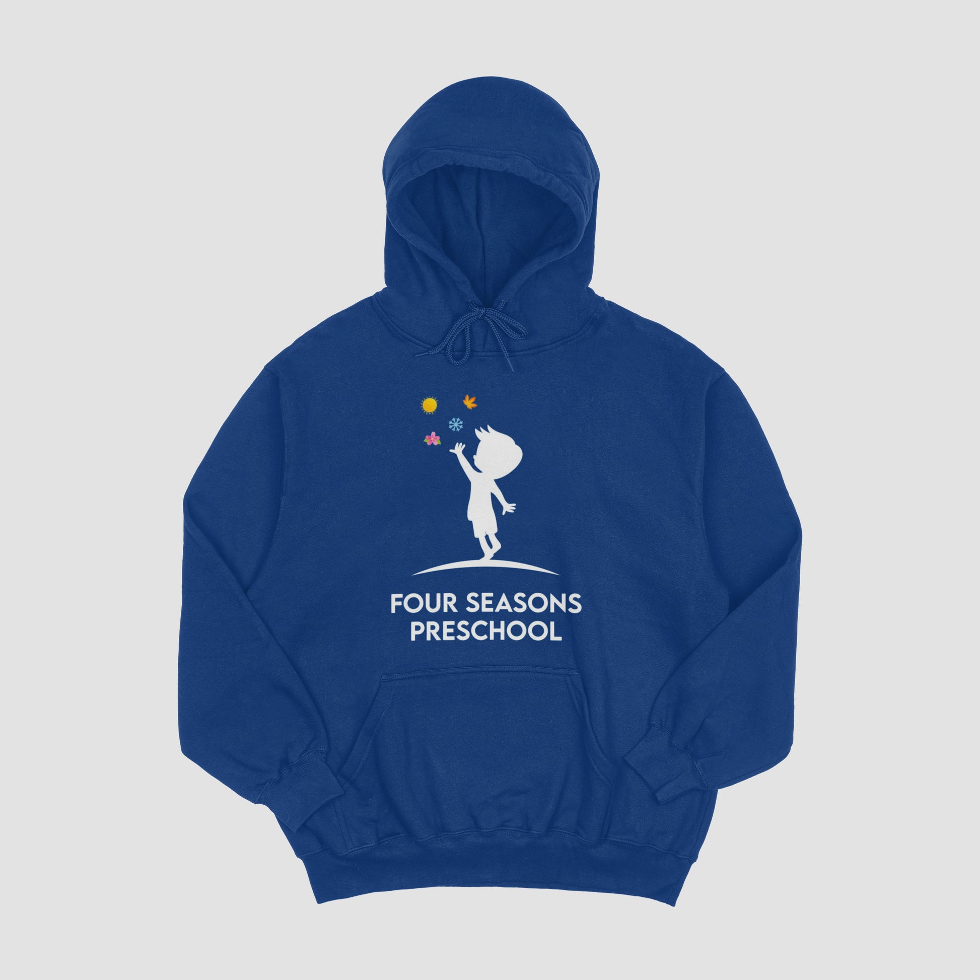 A Hooded Sweatshirt, for the whole family. Made with comfortable cotton, it's available in navy blue or athletic gray, and comes in sizes 6 months to adults.