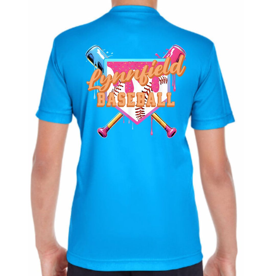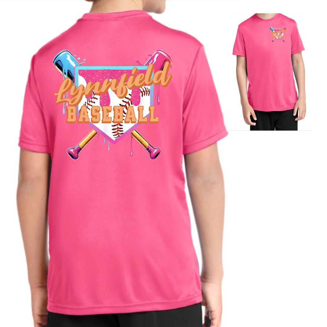 This dri fit shirt features a pocket sized logo on the front of the tee and a large design on the back.
